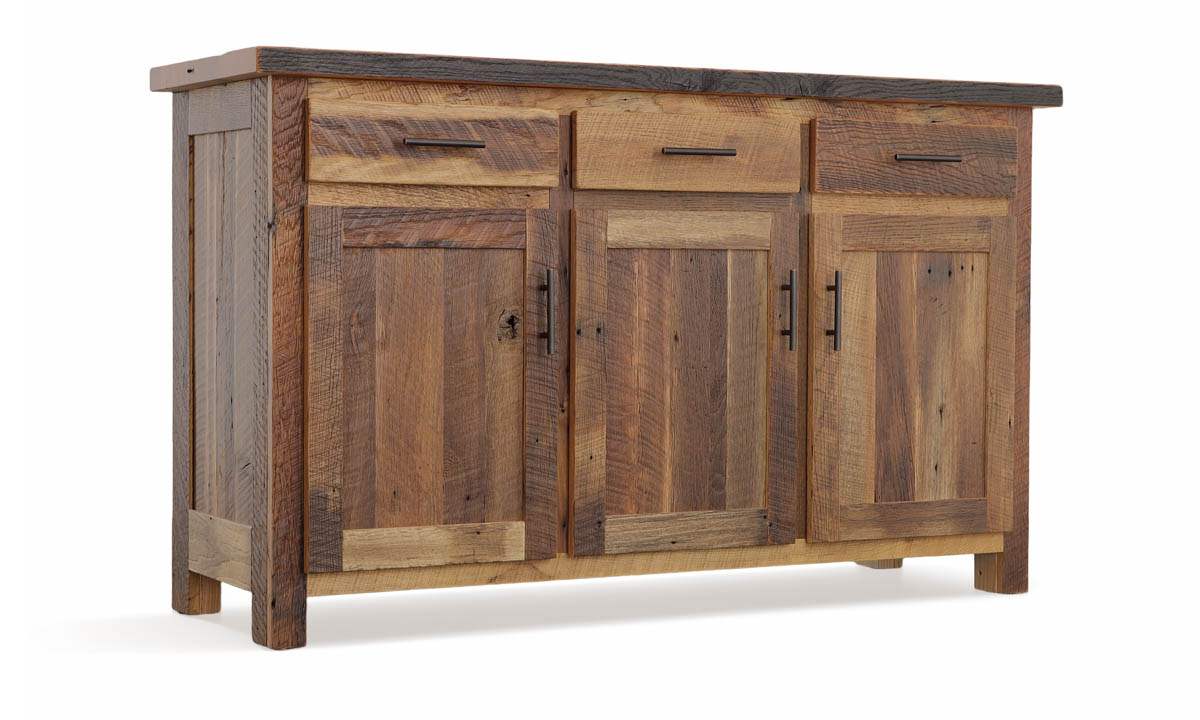 Heritage Solid Reclaimed Barnwood Oak 3-Door Server