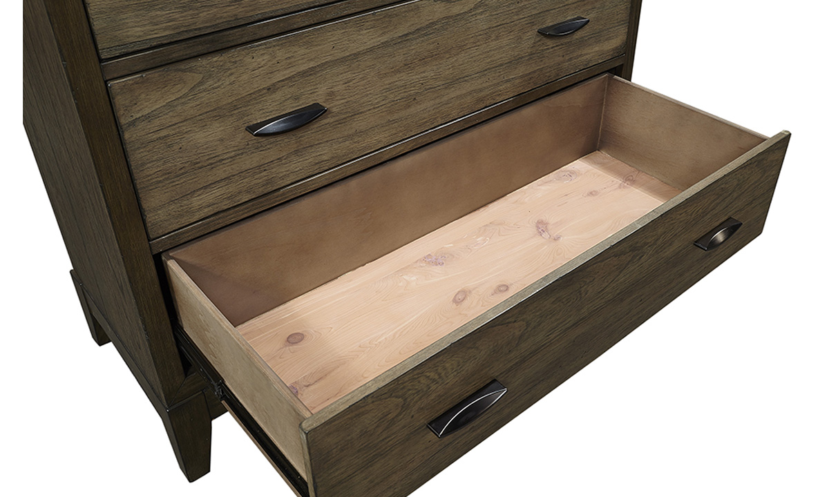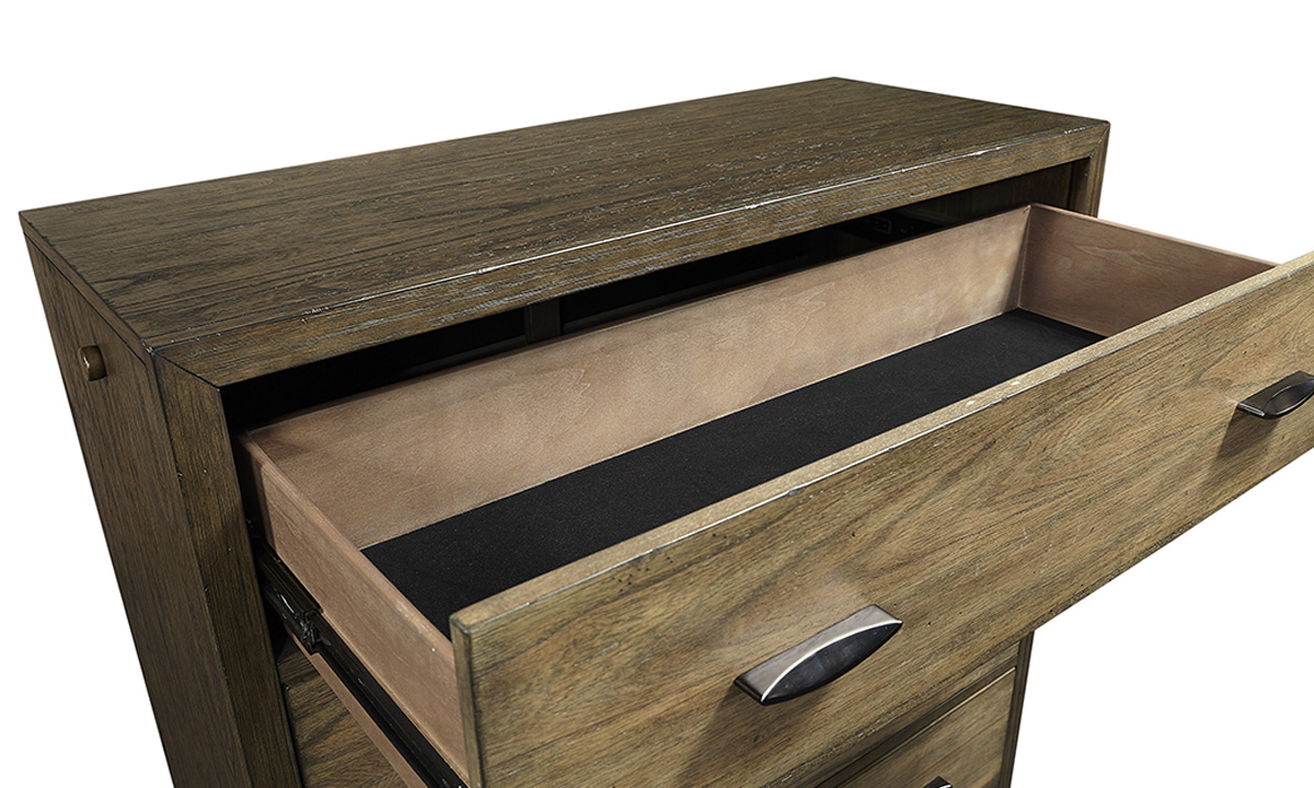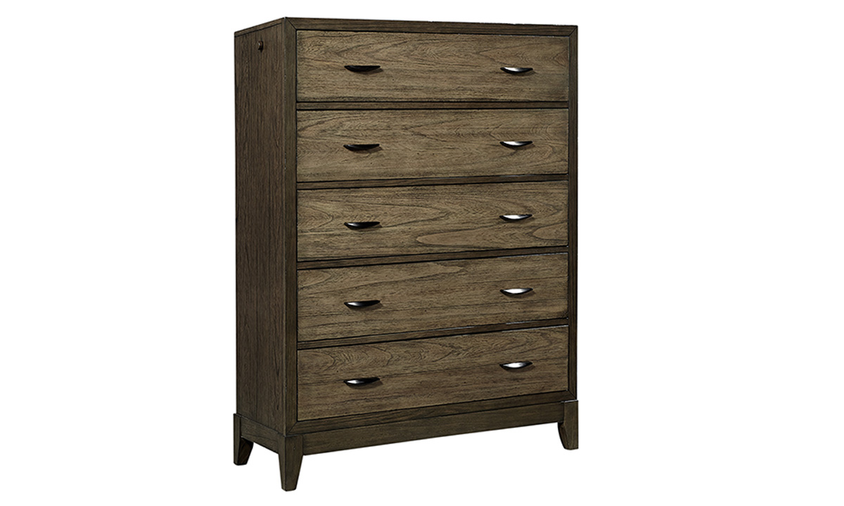 Crafted with quality and highlighted with custom-made black satin nickel knob and bar pull hardware, this stunning 5-Drawer Chest from the Westlake Collection is a timeless piece of luxury furniture. Browse the full collection at our bedroom outlet today!