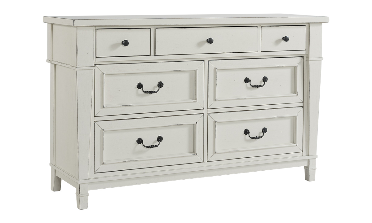 Transform your space with the Northport White 7-Drawer Dresser, a luxury bedroom furniture piece. Built from poplar solids with a stone white finish, it features dovetail joinery, smooth ball bearing guides, and modern farmhouse charm.