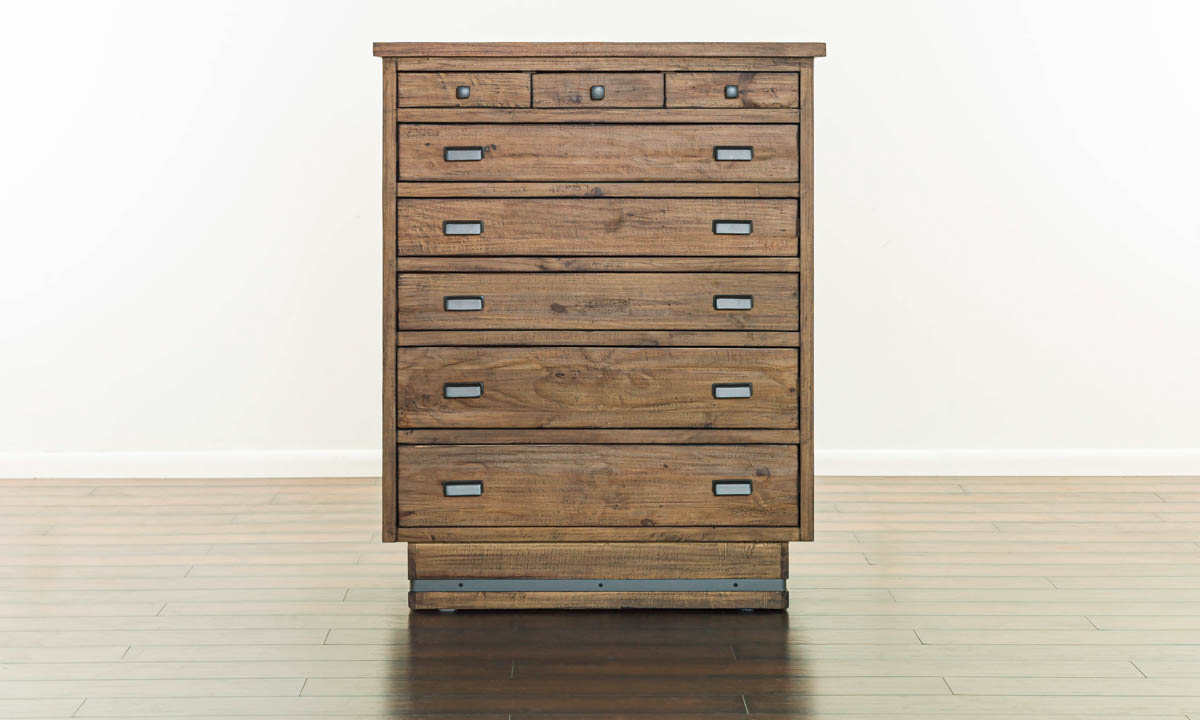 Stop by our bedroom outlet for the charm of the American Way Pine 6-Drawer Dresser! Fashioned from solid pine with a rustic finish, it offers ample storage with 6 drawers and a door. Metal accents add a touch of modern flair to its classic design, making it a timeless addition to any room.