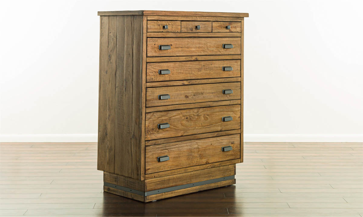 Elevate your room's charm with the American Way Pine 8-Drawer Chest, available now at our bedroom outlet! Crafted in a rustic pine finish from solid pine, this piece is both sturdy and stylish. Its eight spacious drawers are accentuated with distinctive metal details, seamlessly blending rustic appeal with modern design.