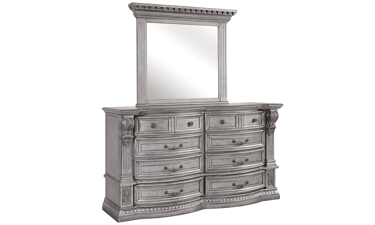 Elevate your bedroom storage with the Carnegie Manor Platinum 8-Drawer Dresser.