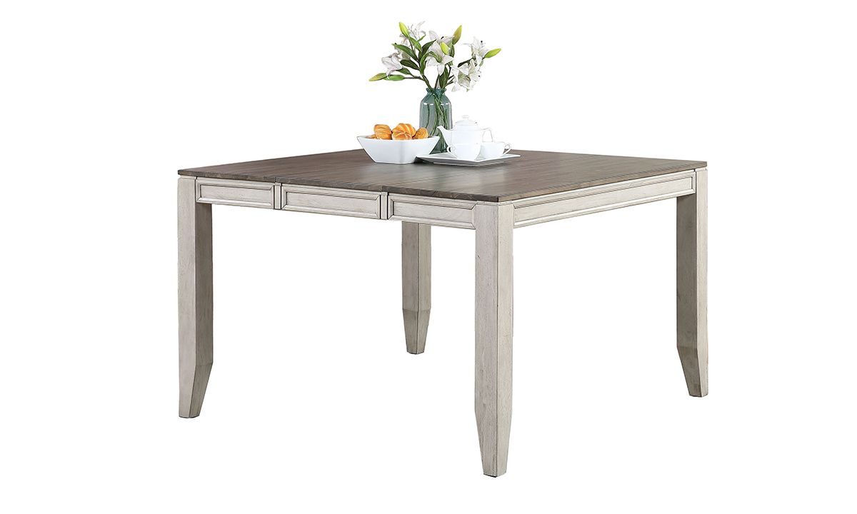 Create a family gathering space grounded in casual, inviting design with the versatile style and functionality of the Abacus Alabaster and Honey Counter Height Dining Table. Crafted to last from Acacia and Asian hardwoods, this 36-inch tall counter height dining table flaunts a rustic two-tone Smoky Alabaster and Honey wood finish to complement the contemporary tapered legs and understated silhouette. Effortlessly transitioning from morning coffee to large family game nights, the table includes an 18-inch self-storing butterfly leaf to expand the surface from 36 to 54-inches wide in minutes.