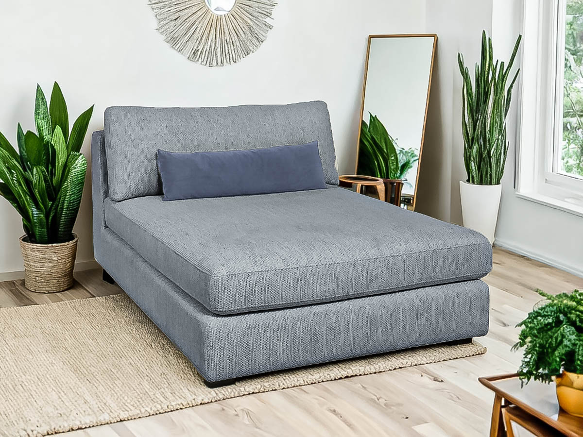 Add a touch of modern elegance to your space with the Drew & Jonathan Victoria Slate Armless Chaise, featuring plush padding, Tafton Slate upholstery, and a complementary lumbar pillow.