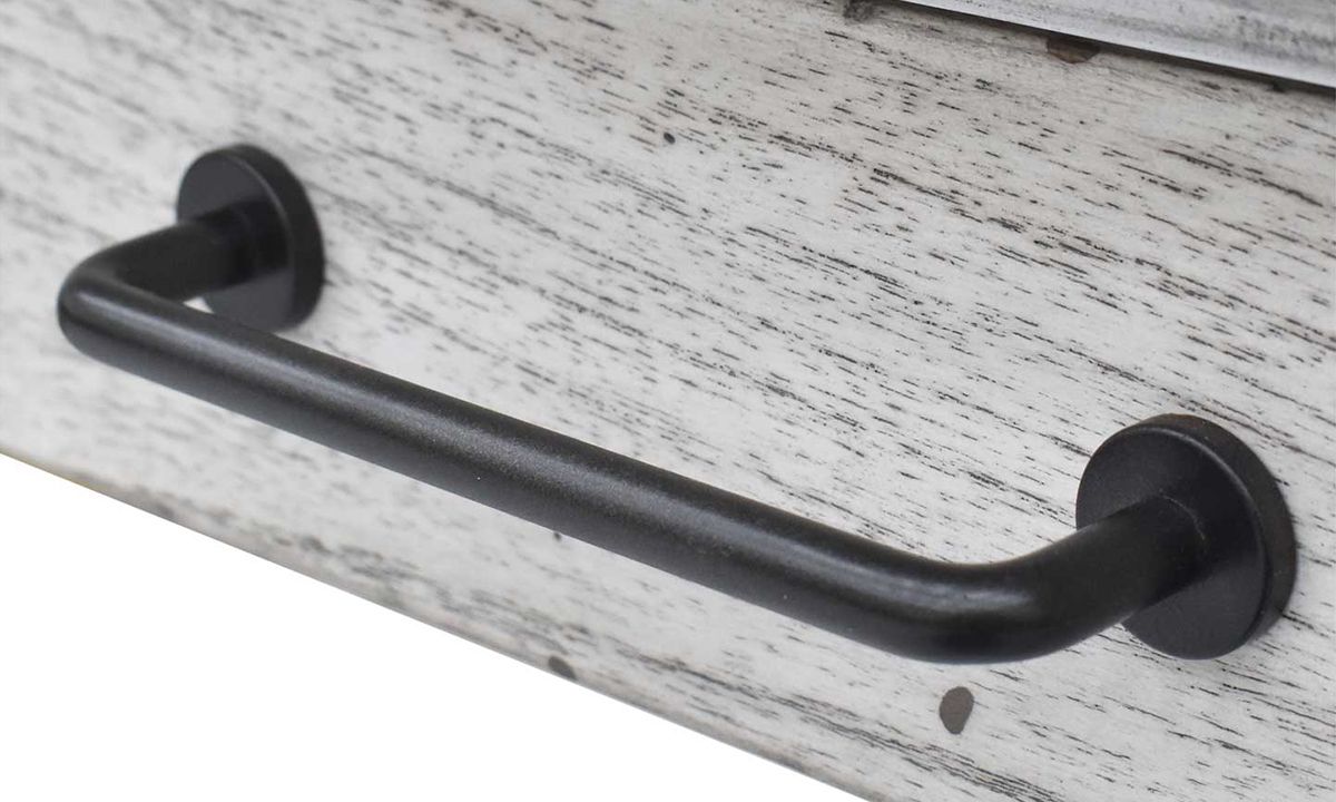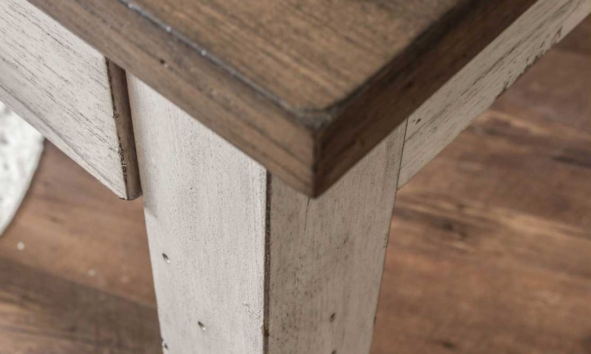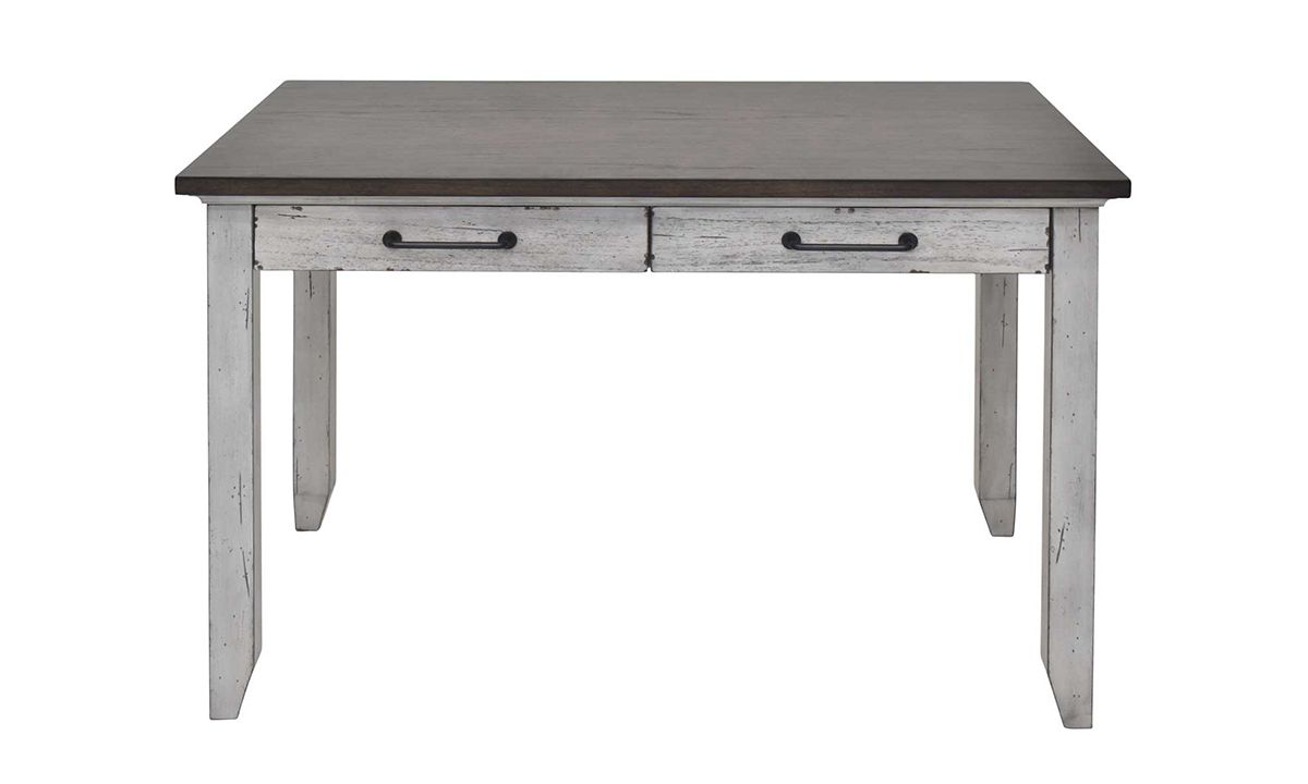 With a versatile look that easily compliments farmhouse, cottage, coastal and transitional décor, the Bear Creek White and Honey Desk can be used as a relaxed bedroom vanity or comfortable workspace in a home office. Crafted from engineered hardwoods and Mindi veneers, this 48-inch wide table employs a casual, two-tone White and Honey wood finish reminiscent of classic farmhouse tables. Perfectly mixing rustic finishes with contemporary design, this two-drawer table flaunts a heavily weathered treatment and modern ebony metal hardware, lending warmth and character to the straightforward silhouette and tapered legs.