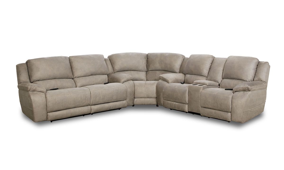 Anchor your living room in customizable comfort and universal style with the Belmond Nickel Power Reclining Sectional with Power Headrests. Meticulously handcrafted in America for lasting resiliency, the sofa, console loveseat and corner wedge that create this three-piece sectional start with hardwood frames, sinuous spring support systems and steel reclining mechanisms beneath plush, high-density foam cushions. As part of Woodward Park Furniture’s Custom Comfort line, each of the four recliners included in the sectional boast power reclining, headrest and lumbar controls, easily customizable via each recliner’s attached remote, which also includes a USB charging port for device charging. A spacious storage console with dual cupholders and outer side storage pockets keep all your entertainment essentials close-at-hand while you lounge in the plush, pillow top armrests and pad-over-chaise seating. Versatile Nickel grey fabric upholstery and a clean streamlined silhouette give this sectional a universal appeal that effortlessly compliments a range of decorative styles.