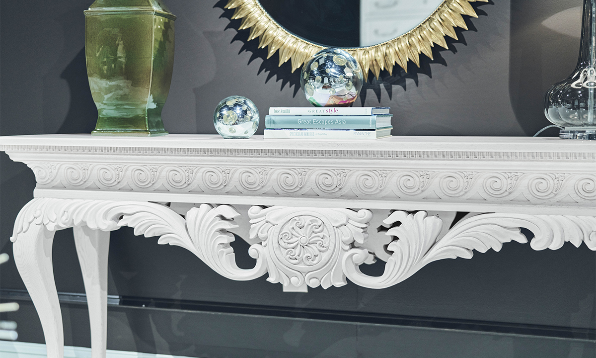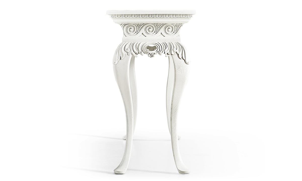 Sinuous bracket legs that meet a curvaceous base for a flowing, dramatic profile that delights the eye