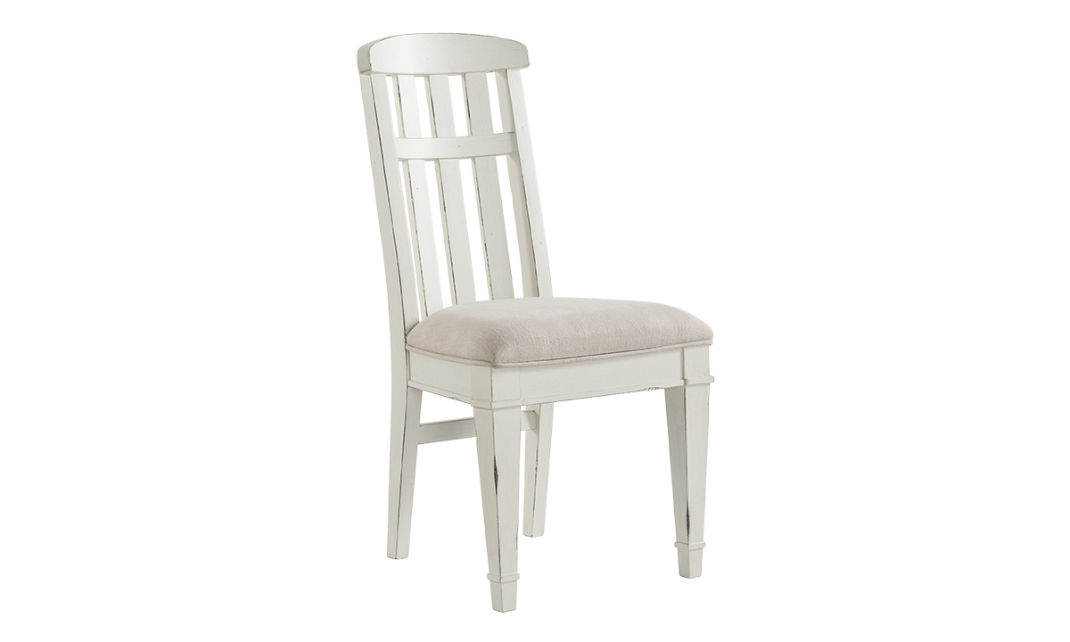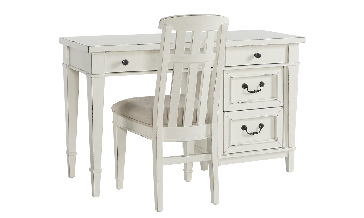Refurbish your study area with the Northport White Desk Chair, a perfect addition to any luxury bedroom furniture set. Featuring a cushioned seat, classic slat back, and a durable poplar solid and veneer frame.