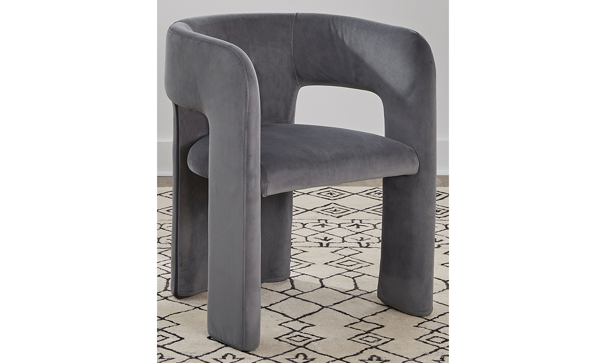 Discover the epitome of modern dining chairs with our Ceres Gray Arm Chair. Luxurious velvet goose fabric meets ergonomic design for ultimate comfort. With levelers on feet, it seamlessly elevates your dining experience.
