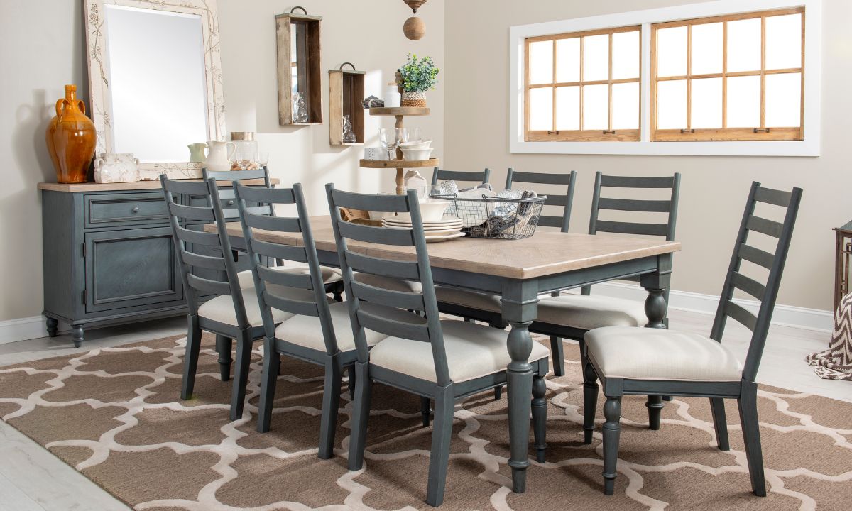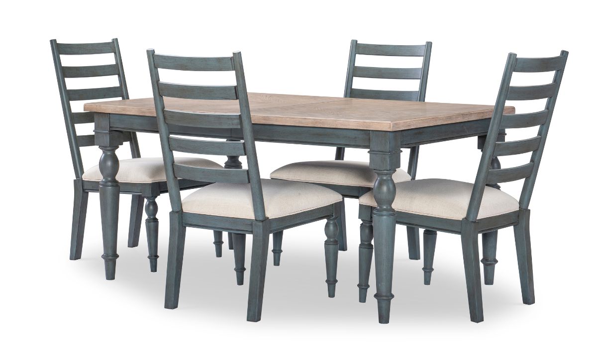 The Easton Hills 5-Piece Dining Table Set features select hardwoods with White Oak veneers in a lovely Denim finish.