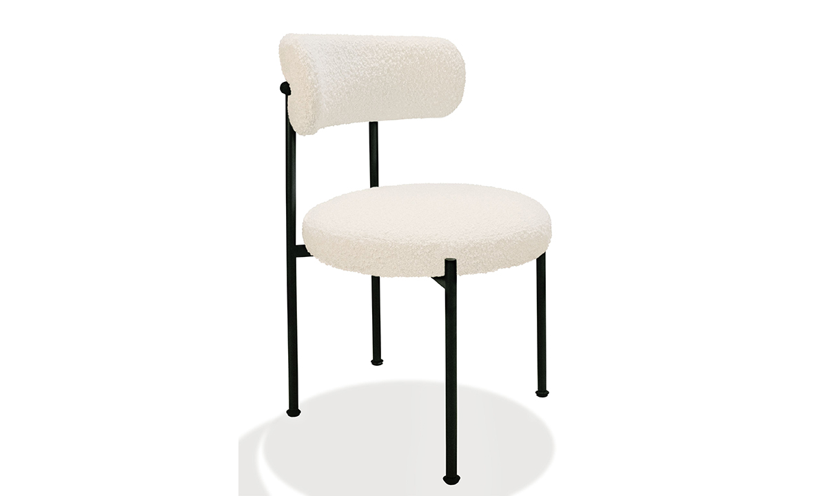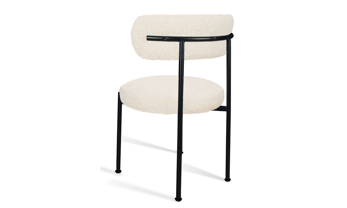 Upgrade your dining experience with the Kali Ivory Boucle Side Chair. This ergonomically designed dining chair features performance boucle and levelers on feet, ensuring both comfort and stability.