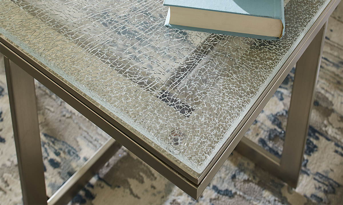 1/2 inch ultra-clear crackled glass tops are beveled for snag-free durability and light refraction