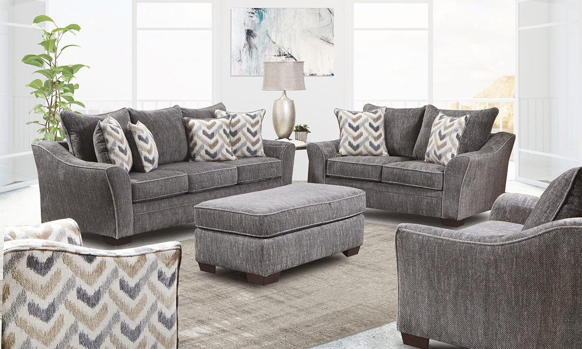 Introducing the Crosby Charcoal Accent Chair, a perfect blend of modern style and comfort. Featuring a sinuous spring system, hardwood frame, and elegant charcoal fabric, it's an American-made piece that adds sophistication to any room.