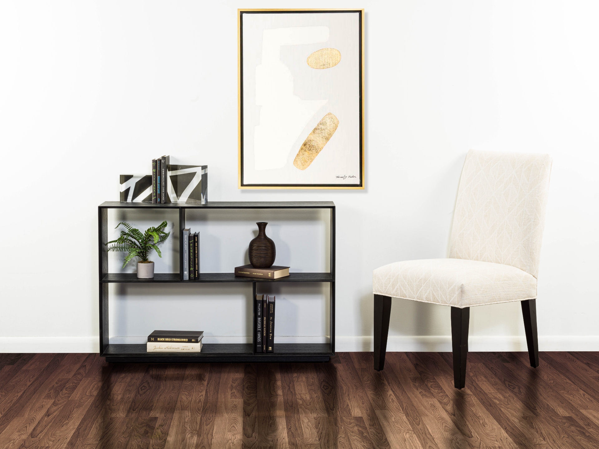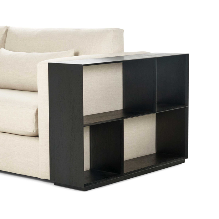 Expertly crafted, the Haywood Sofa Side Bookcase by Mitchell Gold + Bob Williams is a sleek and functional addition to any living space. Perfectly designed to sit alongside the iconic Haywood Track Arm Sofa, it offers both storage and display space in a compact size. The minimalist design, with its warm oak finish, perfectly complements our custom fabric and leather options. For maximum impact, pair it with another bookcase. Dimensions: 42"W X 10"D X 28"H Materials: Oak Veneer, Engineered Wood Finish: Carbon Weight Limits: Top of Bookcase = 210 lb limit, Interior Shelves = 68 lb limit Designed specifically for Haywood Track Arm Sofa but works with the full Haywood Collection as well Care: Wipe up spills immediately Coasters recommended