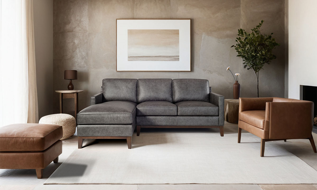 Harlow Charcoal Leather 2-Piece Left Facing Sofa Chaise
