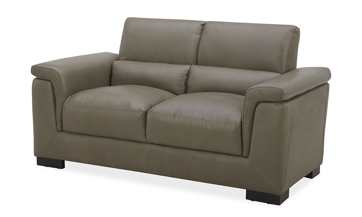 Upgrade your living space with the Padded Arm Leather Loveseat. This leather loveseat features top comfort padded arms, a sinuous spring support system, and top grain leather with match in a chic Salvo Ecru color.