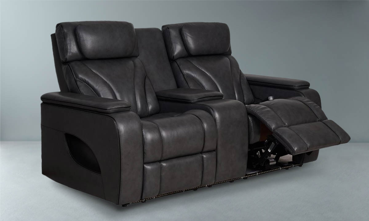 Experience ultimate relaxation with our Leather Power Console Loveseat. It offers reclining comfort with zero gravity, power headrest, air massage with heat and requires minimal space, all in chic Livorno Gray.