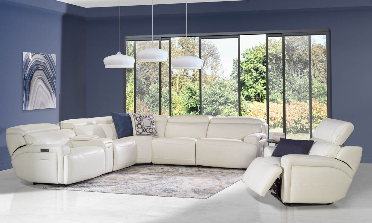 Plymouth White Leather 6-Piece Power Sectional