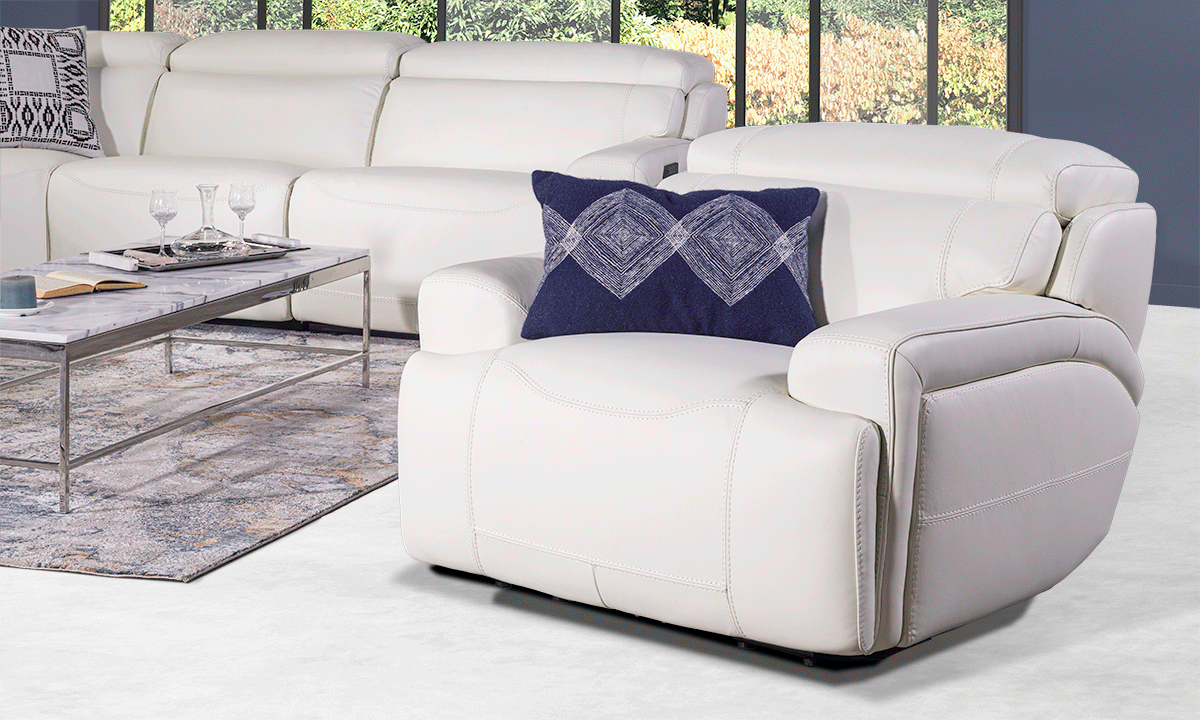 Plymouth White Leather Power Recliner