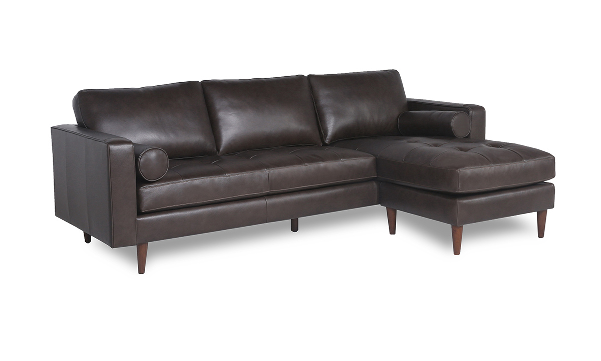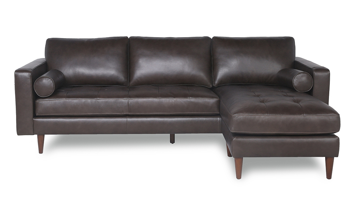 Upgrade your living room with the Blaine Espresso Leather Sofa. Made with top grain leather, this elegant piece features tufted bench seat cushions, stylish turned wooden legs, and a versatile reversible chaise design.