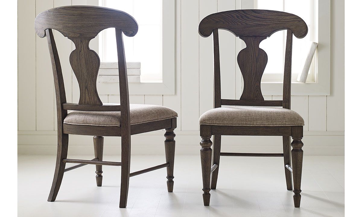 Low price. High style. Easy entertaining. The Brookhaven splat back side chair is made from poplar solids and flat cut elm veneers. It’s slightly distressed, finished in rustic dark elm and has upholstered seat cushions in a linen polyester blend.