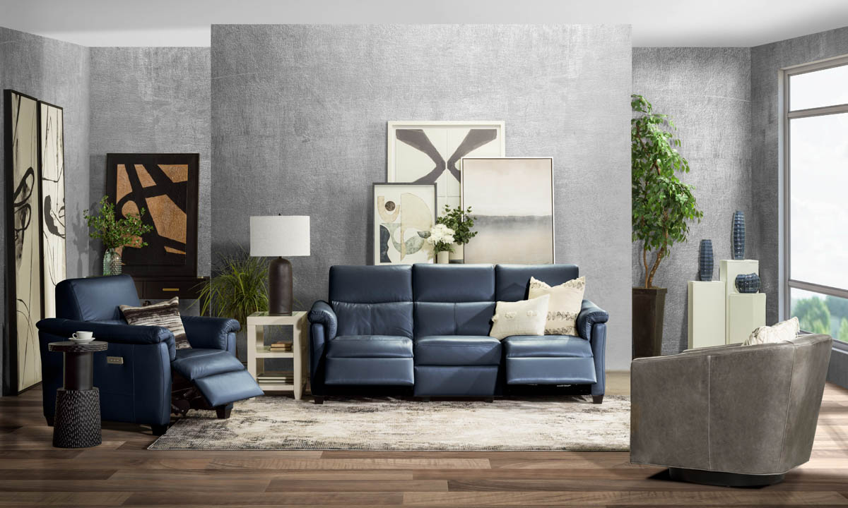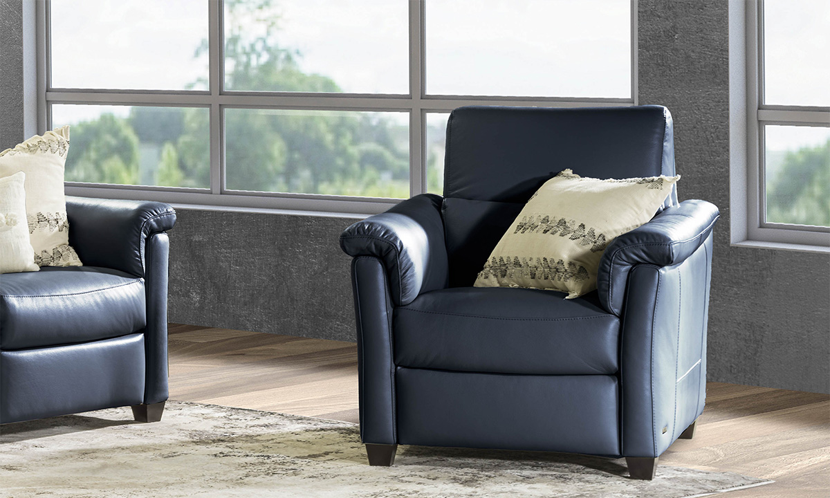 Maddalena Navy Leather Power Recliner