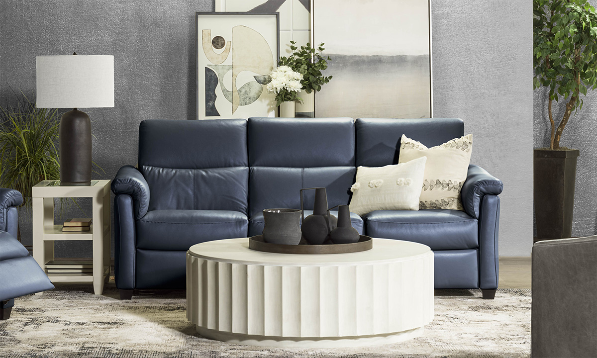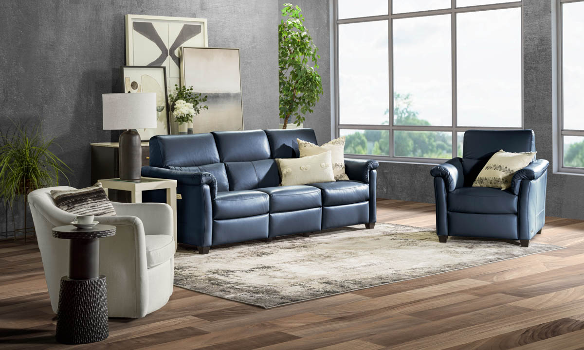 Maddalena Navy Leather Triple Power 5-Piece Sectional