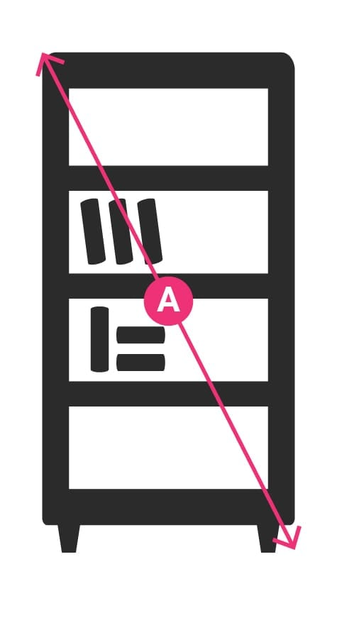 Bookcases: Diagonal height (A) and depth (B) should not exceed your entryway clearance.