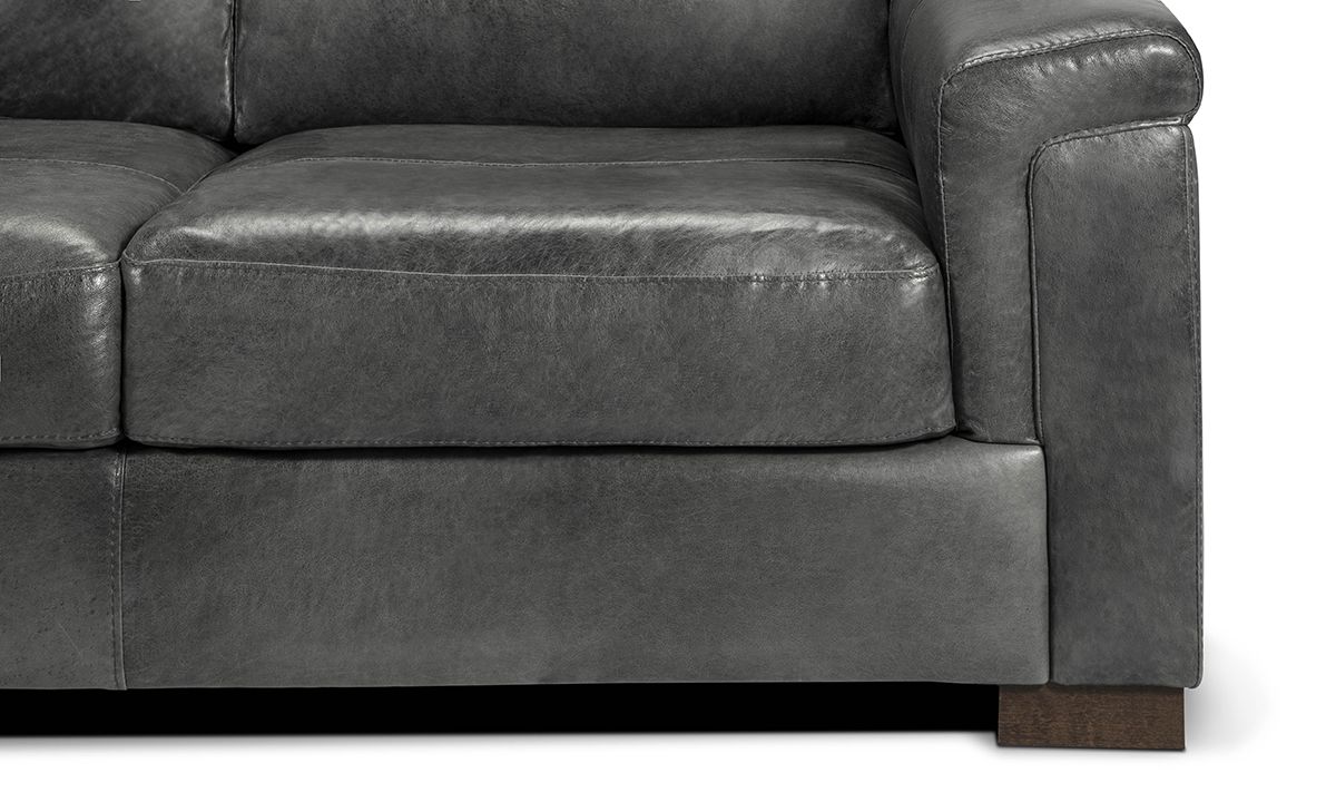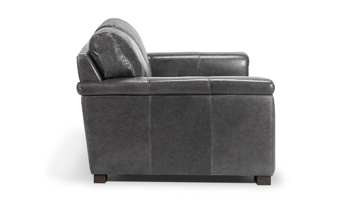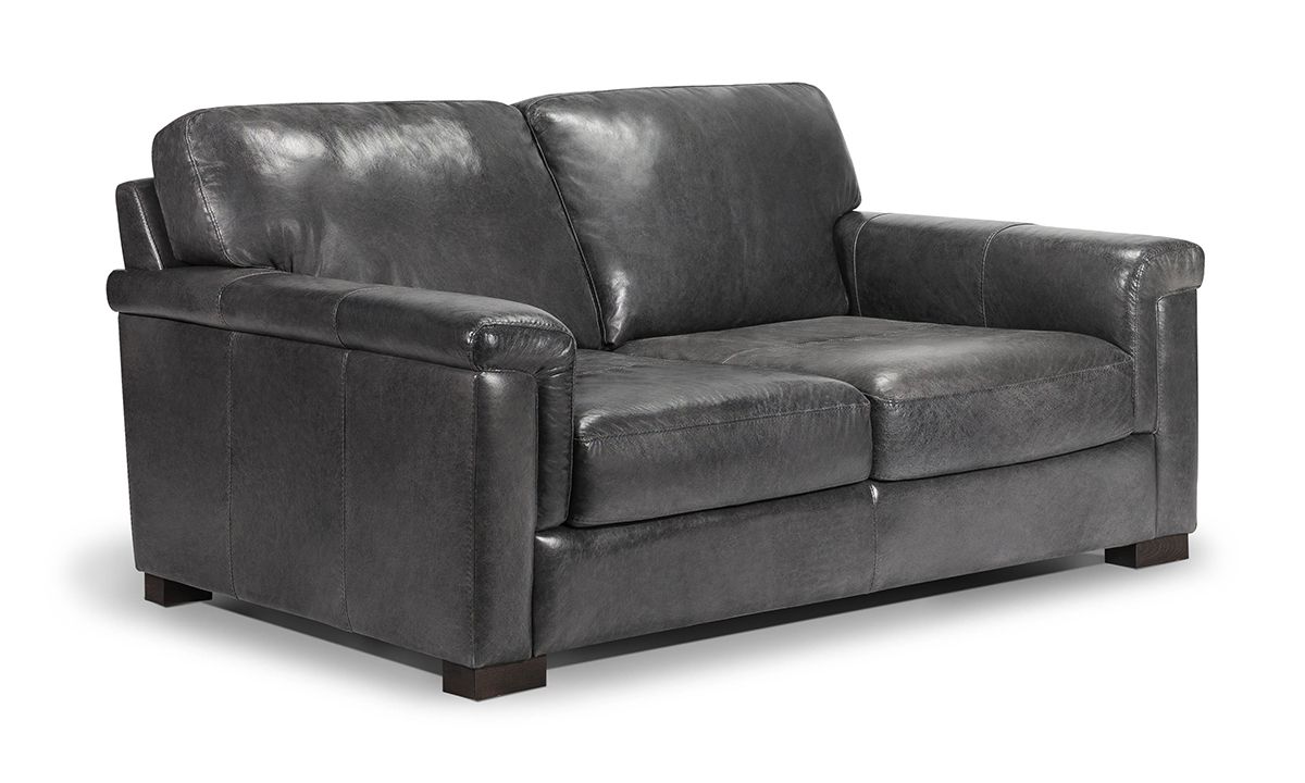 Complete your living room, entertainment space or home office with the premium quality and handsome charm of the Medici Grey Leather Loveseat. Carefully handcrafted in Italy for utmost durability, this cozy 71-inch wide loveseat starts with a solid hardwood frame and Pirelli webbed support system, which are then completely enveloped in all over foam padding and topped with plush, high-density foam cushions. Buttery soft top grain Italian leather is hand-tailored to the contemporary, low-slung profile, distinguished by unique layover armrests, distinctive stitching accents and irresistibly deep seats. Softening the modern design, the calming dark grey leather color captures the luxe look and feel of premium top grain leather to give the piece a lasting beauty that will only get better with everyday wear and age.