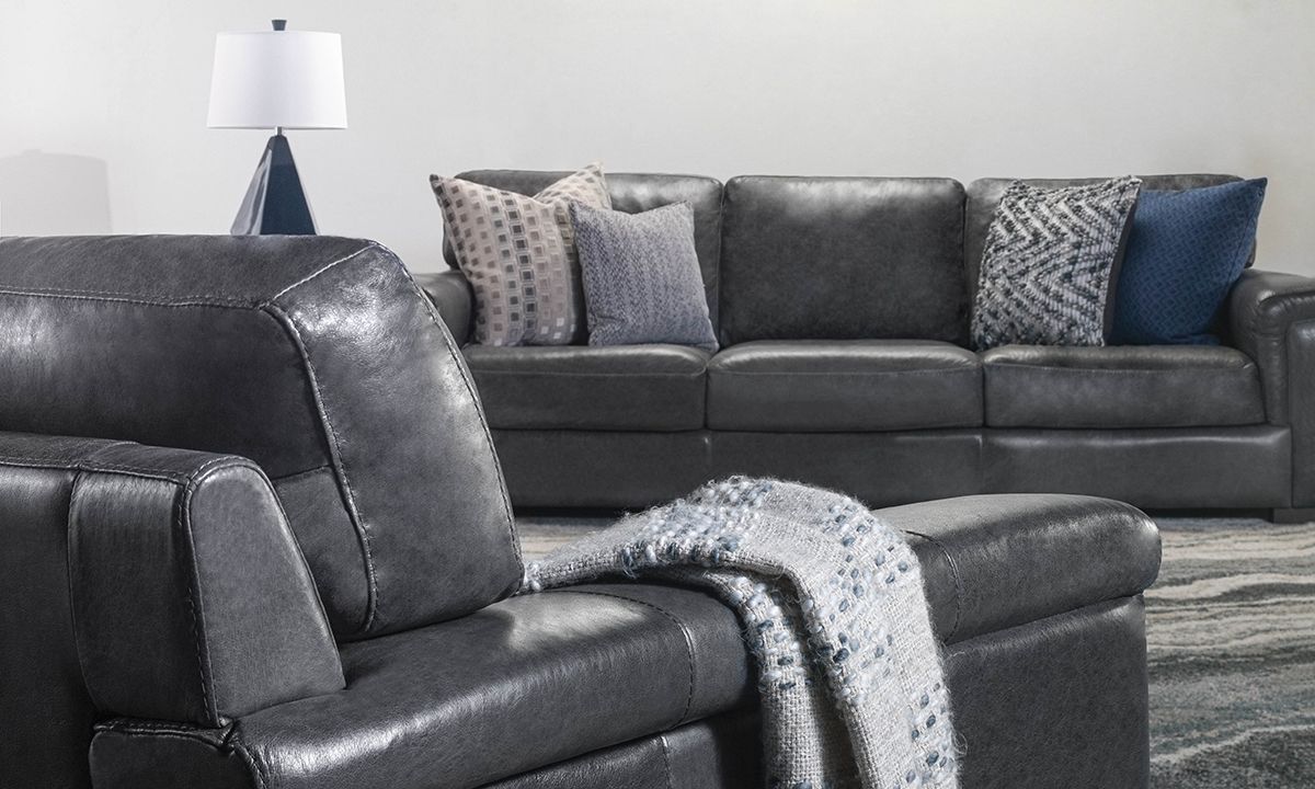 The Medici Leather Collection is available in Chestnut brown and gray colorways. Choose from the sofa, loveseat, armchair and ottoman of the living room sets, browse our twelve most popular sectional configurations or create your own for a completely custom look.