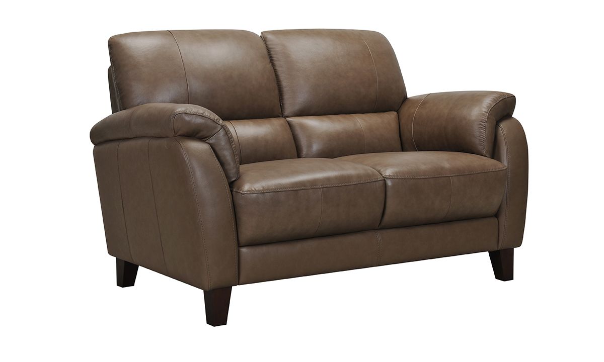 Designed for livable luxury, the Montclair Latte Leather Loveseat bridges comfort and style to effortlessly elevate any contemporary, transitional or industrial decorative ensembles. Crafted for lasting comfort and looks, the high-density foam cushions and elastic webbed support system on this 61-inch loveseat ensure that the understated bustle back silhouette maintains its shape for years to come. Sumptuous top grain leather in a warm latte brown shade complements the cozy flare arms and tapered wood legs to complete the high-end look.