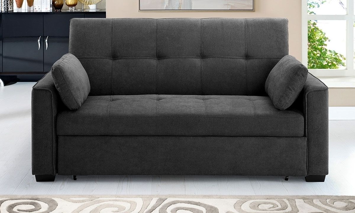 Form, function and fun await when you add the Nantucket sleeper sofa to your living space. Encompassed within the contemporary silhouette of the sofa is the pocket-coil innerspring support system wrapped in high-density foam cushions and soft, easy-clean charcoal micro-suede upholstery. Clean, angular lines and stylish tufting define the look of this polished piece and conceal the hidden sleeper functionality, which can be easily accessed by the two pull handles at front and slide forward to reveal a cushioned platform that pops up and sits flush with the existing sofa seat. The sofa back also reclines backward into a lounging position for optimal TV viewing or comfortable reading and lays flat to create a queen-size bed with the pop-up platform. Perfect for sprawling out during movie nights or as an extra comfortable sleeping space for guests, this sofa is a clever, appealing addition to any space.