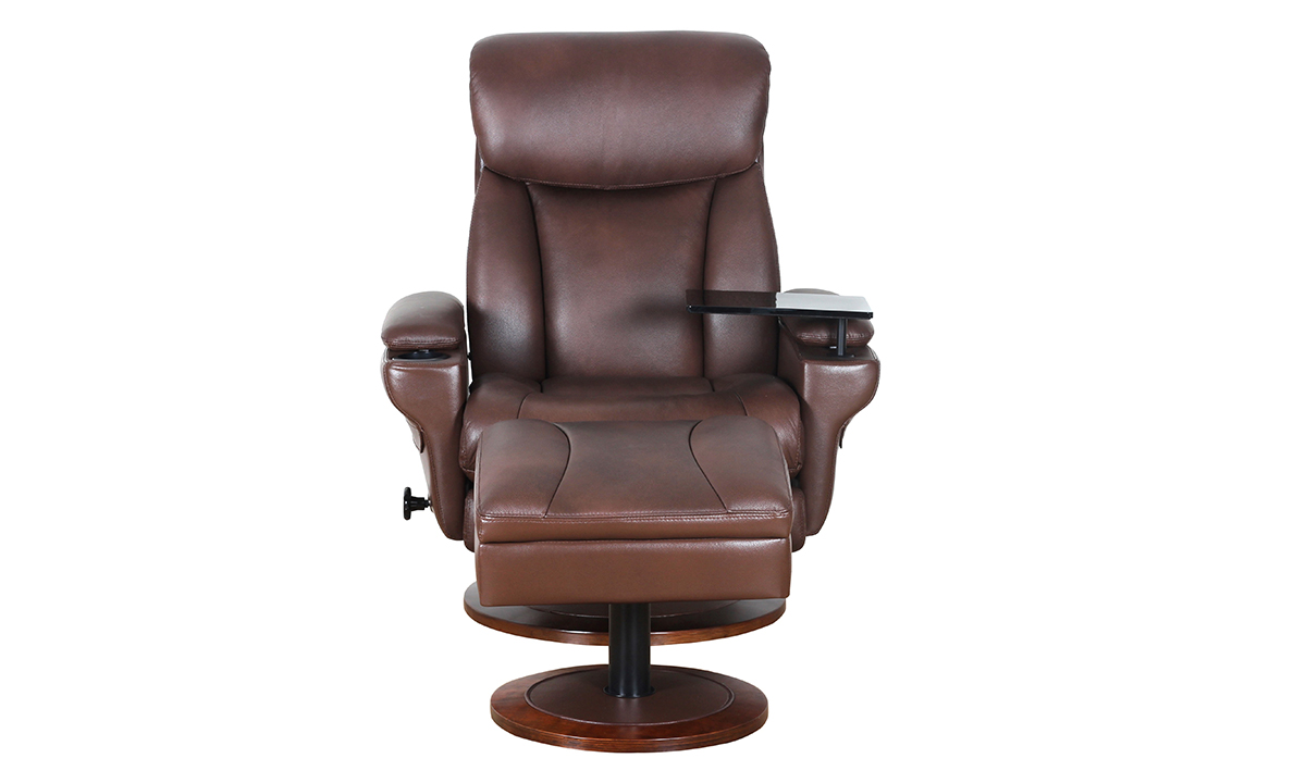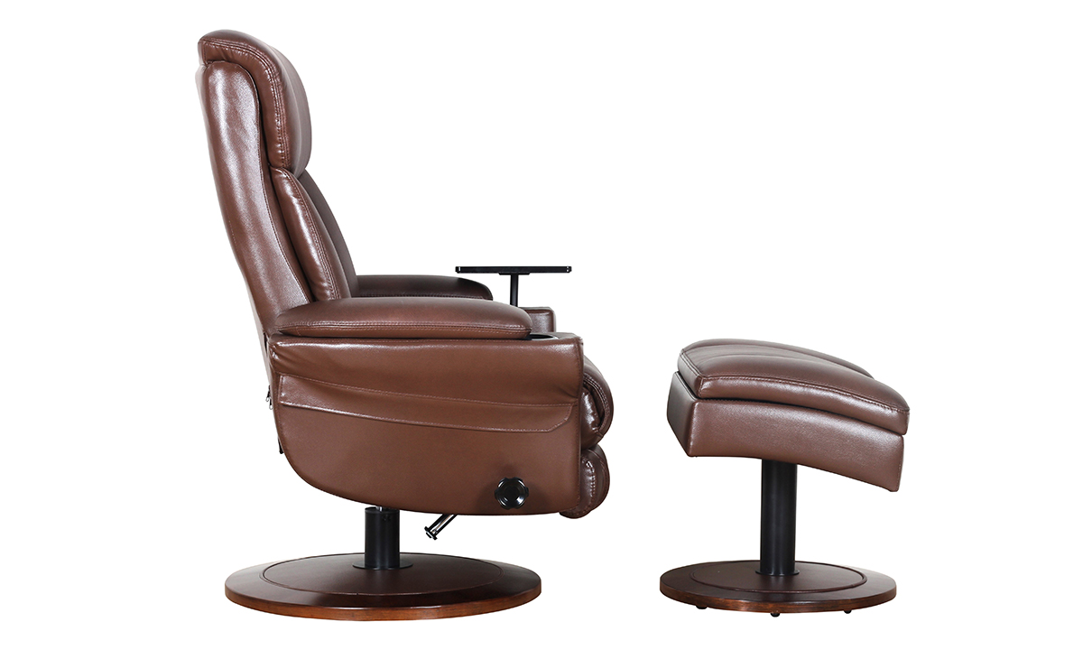 William Brown Leather Pedestal Recliner and Ottoman