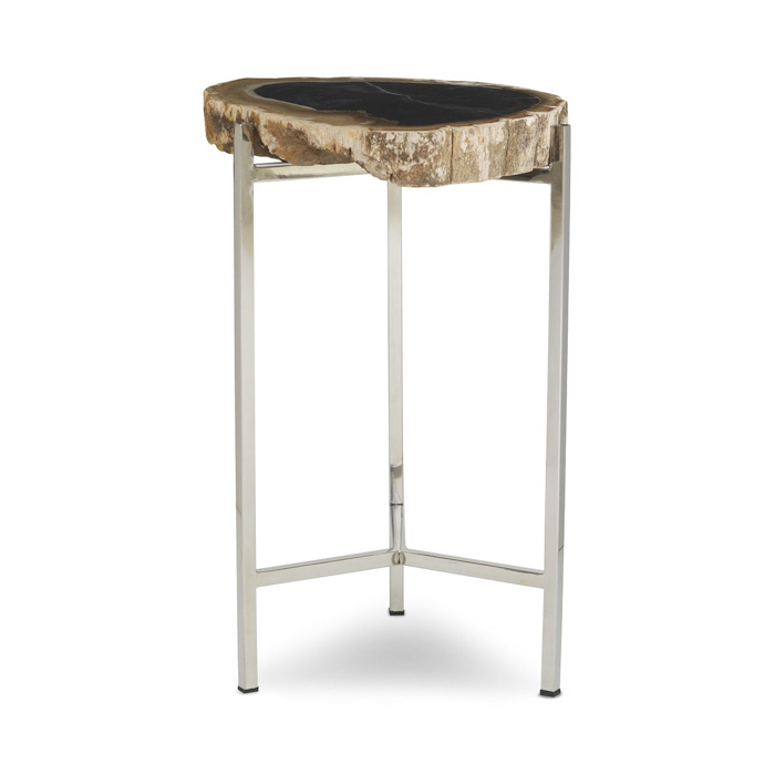 Enhance your space with the impressive Petrified Wood Pull Up Table from Mitchell Gold + Bob Williams. This stylish accent table boasts a modern and organic design, perfect for making a statement in a compact area. Whether you need a spot to set your beverage or simply add a touch of elegance, this small yet durable table is the ideal choice. The sleek, polished stainless steel base supports a stunning petrified-wood top, providing a chic and easy-to-maintain surface that complements various styles.
