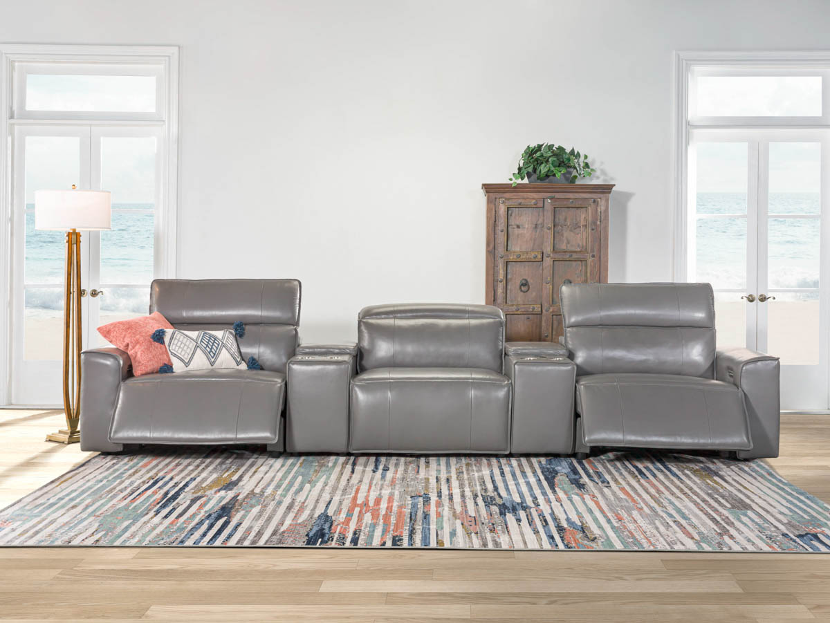 In the Savant Gray Leather Power Home Theater Sectional, every seat is an invitation to indulge in luxury and embrace innovation