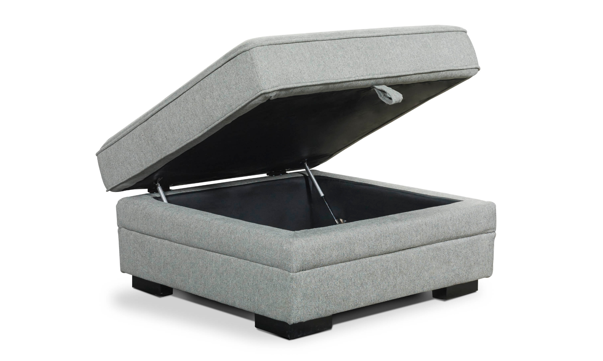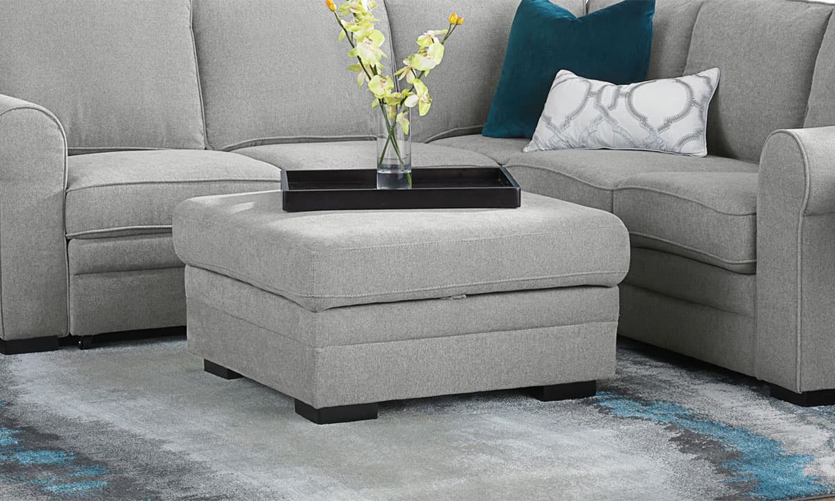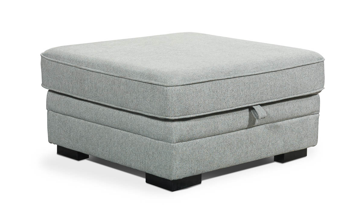 Accentuate your living space and keep the room tidy with the Prospect Grey Cocktail Storage Ottoman. This 35-inch square accessory will make an easy addition to the décor thanks to its soft pebble grey fabric. Simply lift the top of this ottoman to reveal the hidden storage space inside, perfect for stowing blankets and more.