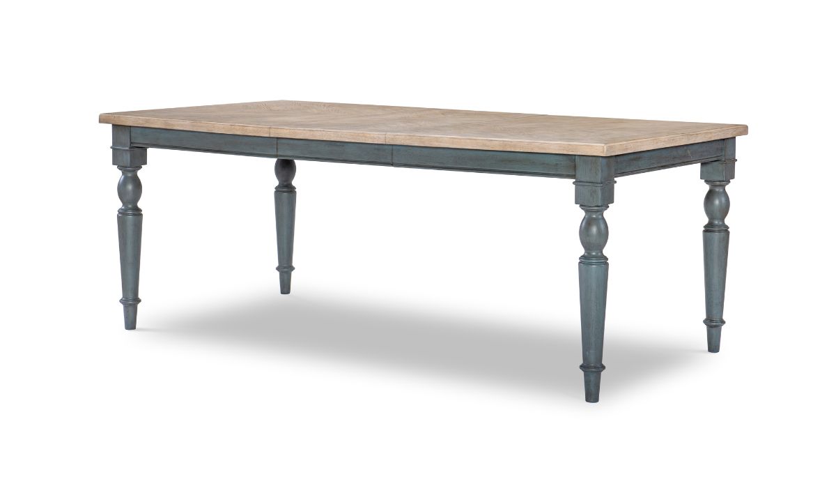 Legacy Classic presents the Easton Hills Dining Table! Enjoy dinner with the family each night with this table built from hardwoods in a soft, Denim finish. The perfect piece to tie two complementary styles together, this table extends to 78 inches with a removable leaf and has built in metal to metal bolt construction for additional strength and durability.