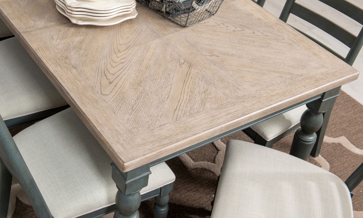 The Easton Hills 5-Piece Dining Table Set features select hardwoods with White Oak veneers in a lovely Denim finish.