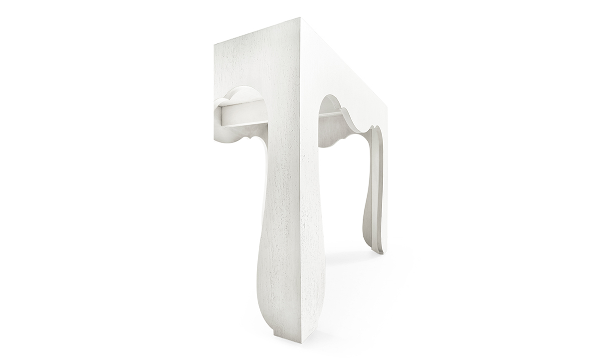 Sinuous bracket legs that meet a curvaceous base for a flowing, dramatic profile that delights the eye