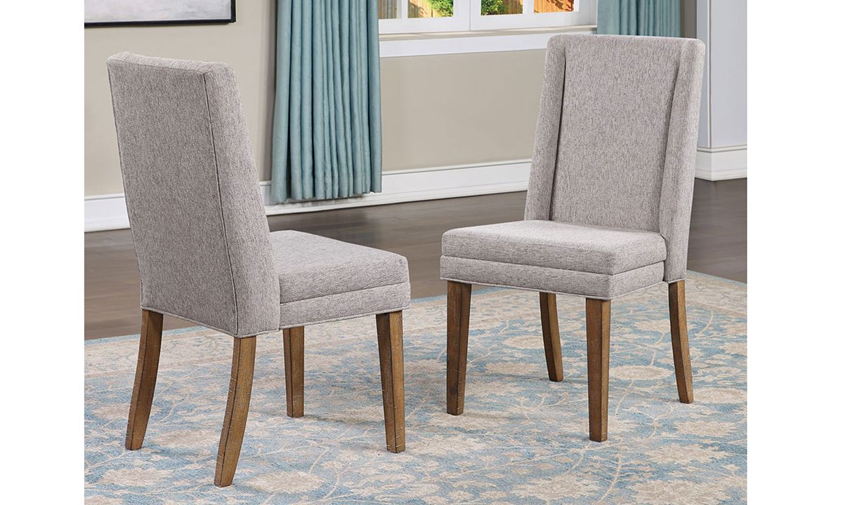 As a comfortable, casual desk or guest chair in the living room or home office or paired up with the matching Riverdale Driftwood dining collection in the dining room or kitchen, the Riverdale Driftwood Upholstered Side Chair effortlessly elevates any room setting. Crafted from rough-hewn Pine and Rubberwood solids and sealed in a warm Driftwood finish, the understated legs of this 40-inch tall side chair find a perfect pairing in the fabric-upholstered seat and back cushions above, lending a tailored versatility to this classic chair.