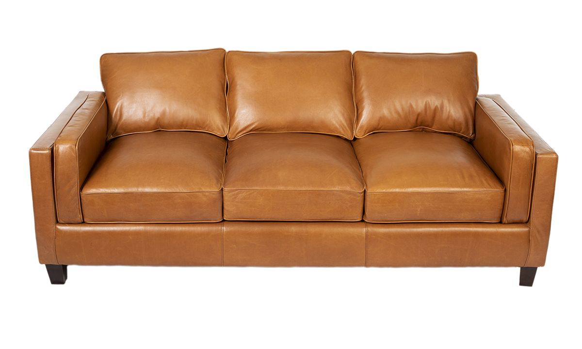 Practically begging you to sit down and lounge, the Rocky Mountain Leather Taos Butterscotch Sofa takes low-slung, contemporary design to the next level. Carefully hand-crafted in America for lasting resiliency, this 86-inch wide sofa starts with a solid hardwood frame and eight-way hand tied coil spring support system, each coil carefully hand wrapped in muslin fabric for greater longevity. Plush, high-density foam cushions, complete with luxurious down-blend seat cushion toppers are then enveloped in rich, Butterscotch tan 100% top grain leather, for a look and feel that will only get more comfortable, and beautiful, with age. A modern, linear silhouette, distinguished by detached double armrests and a low-slung frame, give this sofa a sleek, stylish appeal that is sure to elevate any living space.