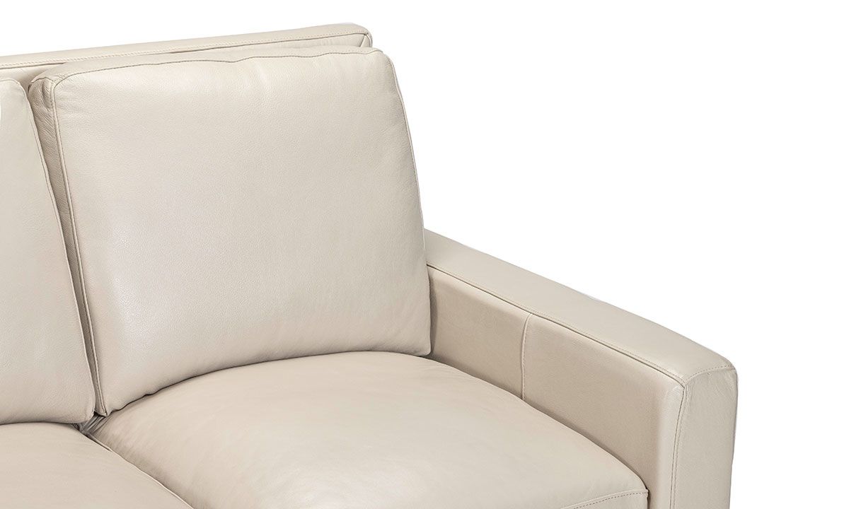American-made craftmanship, contemporary styling and striking bone white top grain leather give this luxurious sofa sophisticated, timeless appeal.