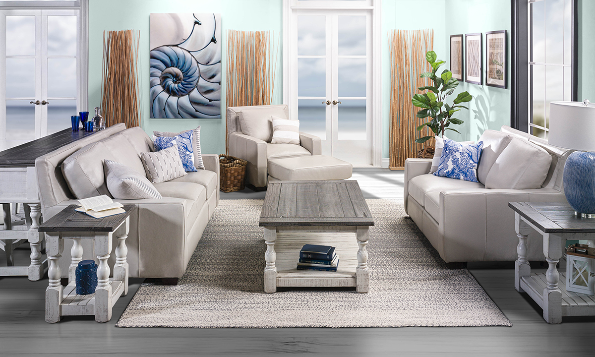 American-made craftmanship, contemporary styling and striking bone white top grain leather give this luxurious sofa sophisticated, timeless appeal.