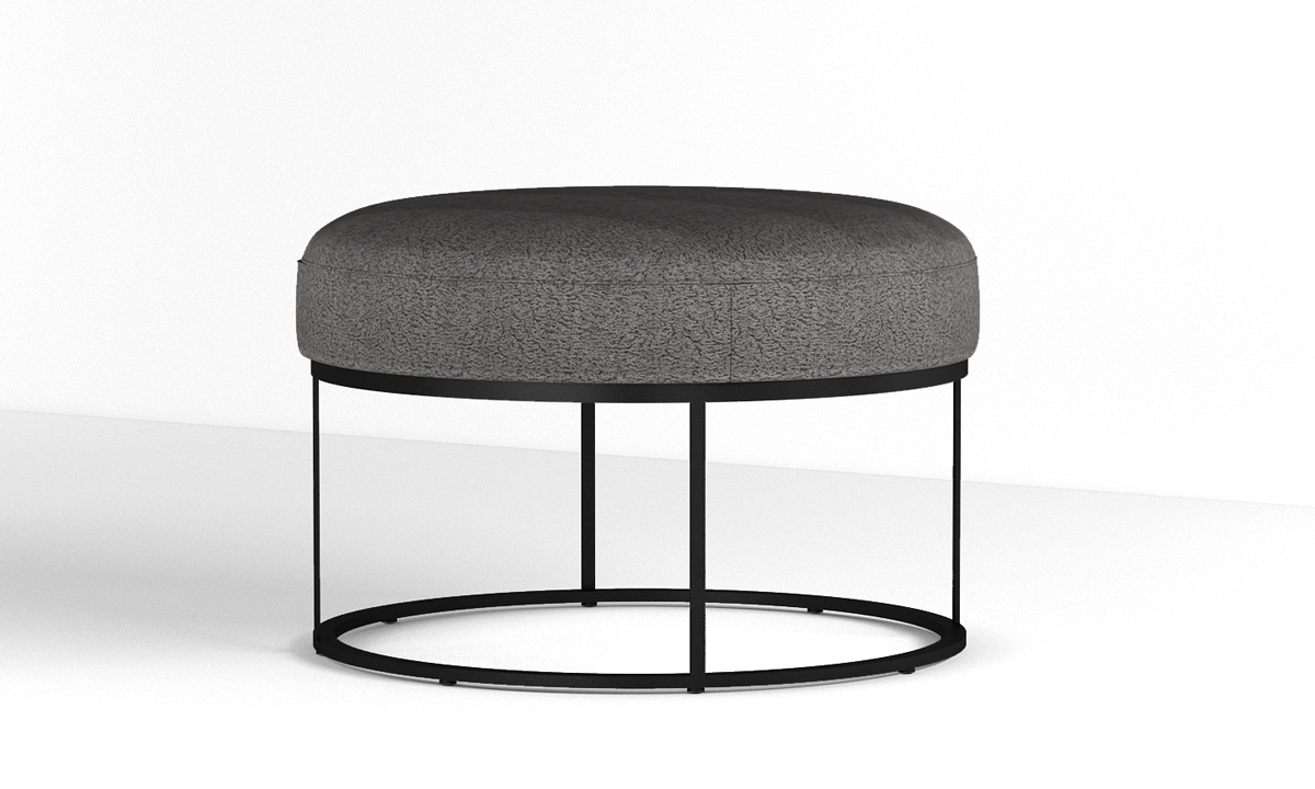 The dome-shaped Times Square Round Ottoman is a striking modern accent featuring a metal base and polyester blend fabric combo. Feather down blend cushion toppers, high-density foam cushions and sinuous spring and webbed support system add plush comfort and lasting value.
