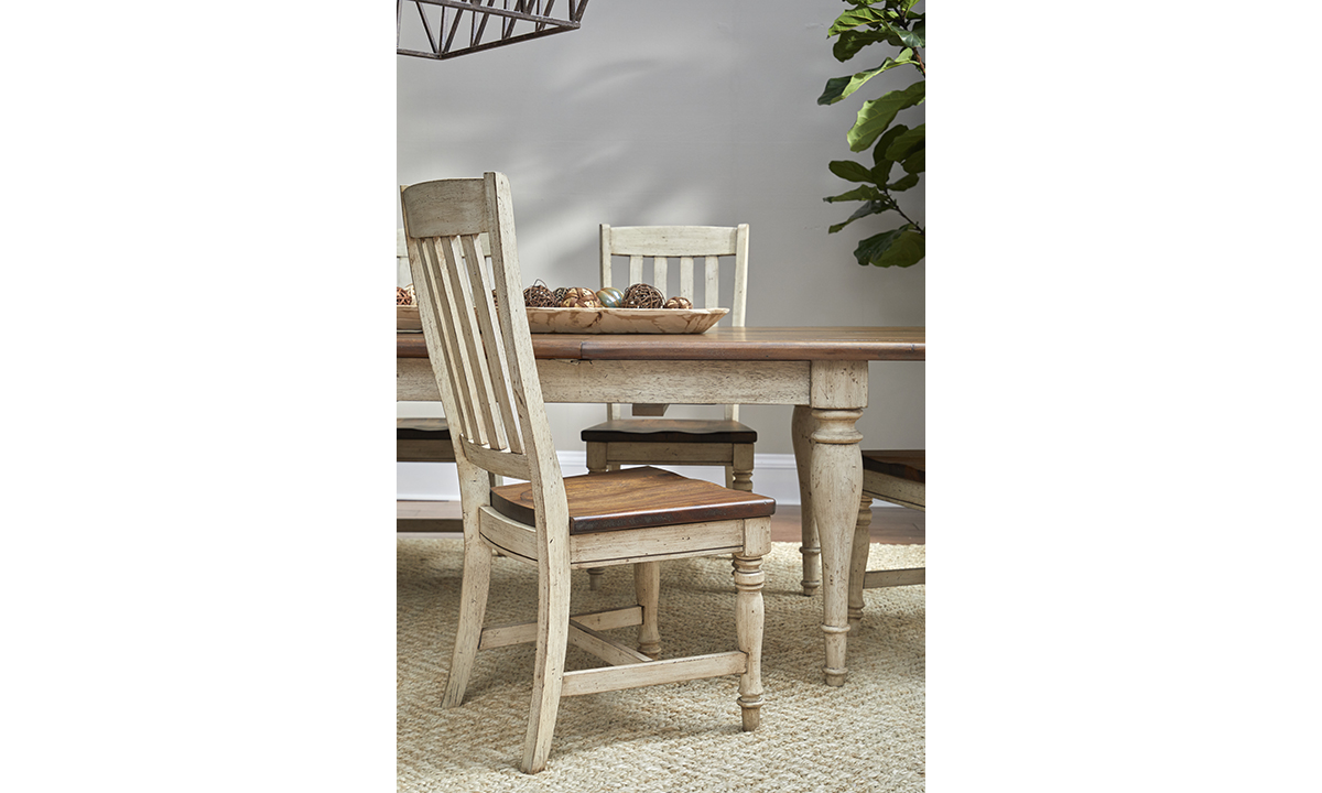The Belmont Antique Linen Side Chair is a statement of subtle elegance, featuring an antique linen finish on durable Sengon Tekik hardwoods. The chair's classic slat back design not only offers aesthetic appeal but also provides supportive comfort, making it a perfect companion for any dining occasion.