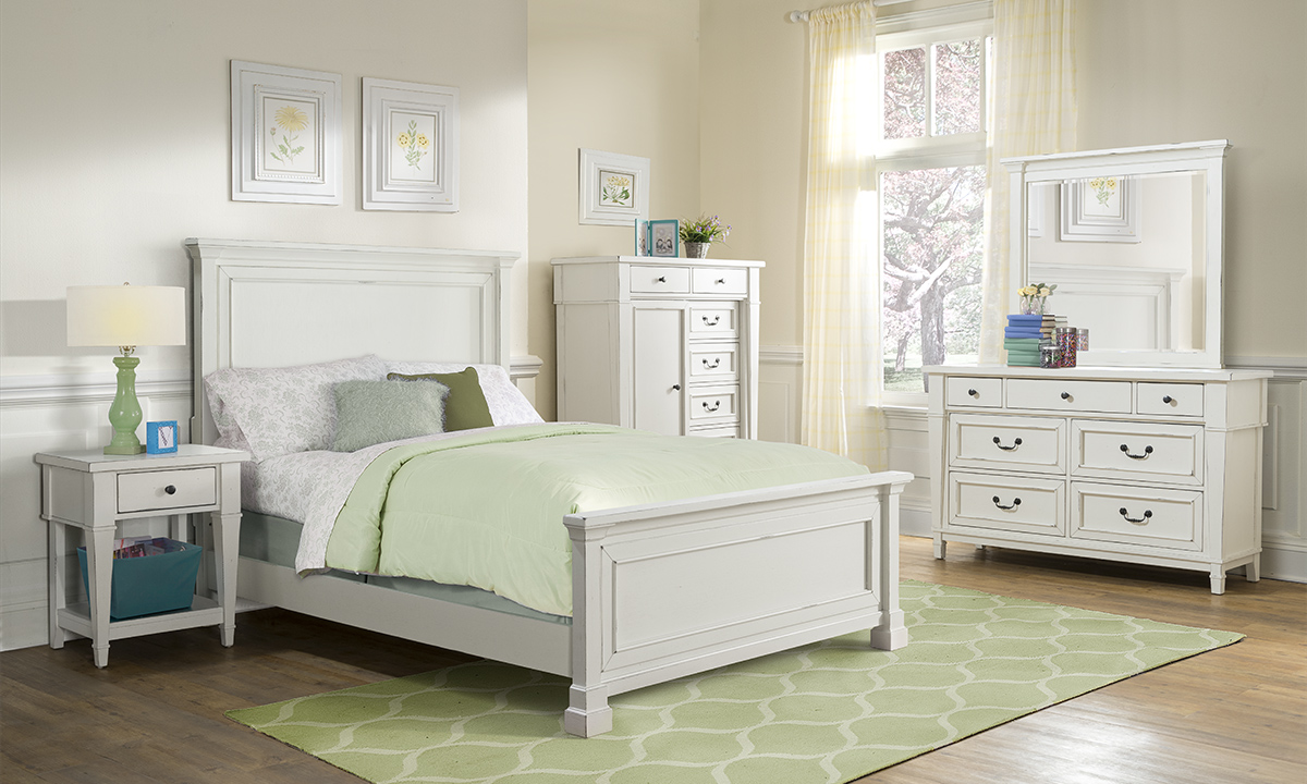 Complement your space with the Northport White Mirror, the ideal mirror for bedroom settings. Featuring beveled glass and a crown molding frame in a stone white finish, it adds modern farmhouse charm to any decor.