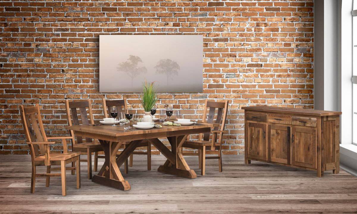 This rustic 5-Piece Dining Set features a table that is extendable up to 96" with two self storing leaves--all made from solid oak hardwood. Let the remarkable journey of each barnwood board evoke a sense of fascination, mystery, and awe, while this exquisite dining set becomes the centerpiece of your home.