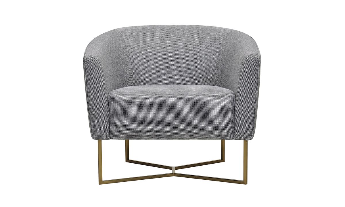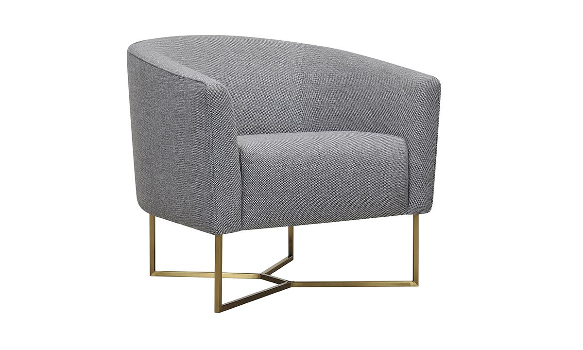 Checking off all the right boxes, the Uptown Pepper Accent Chair delivers cozy, cocoon-like comfort and playful, contemporary style. Perfectly suited to small space living, the slender, rounded profile and low-slung silhouette are tailored in versatile black and white fabric upholstery. The shapely, wraparound body is paired with a modern metal X-base for a stylish marriage of soft and sleek materials.