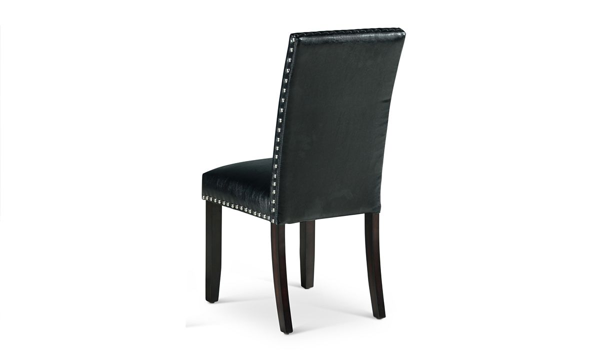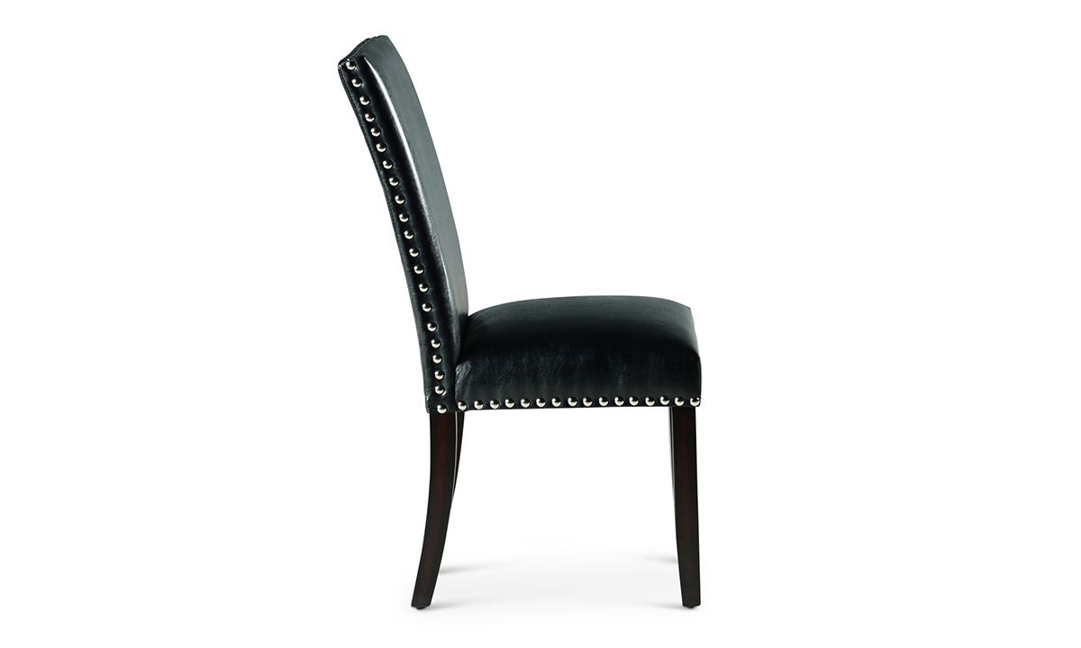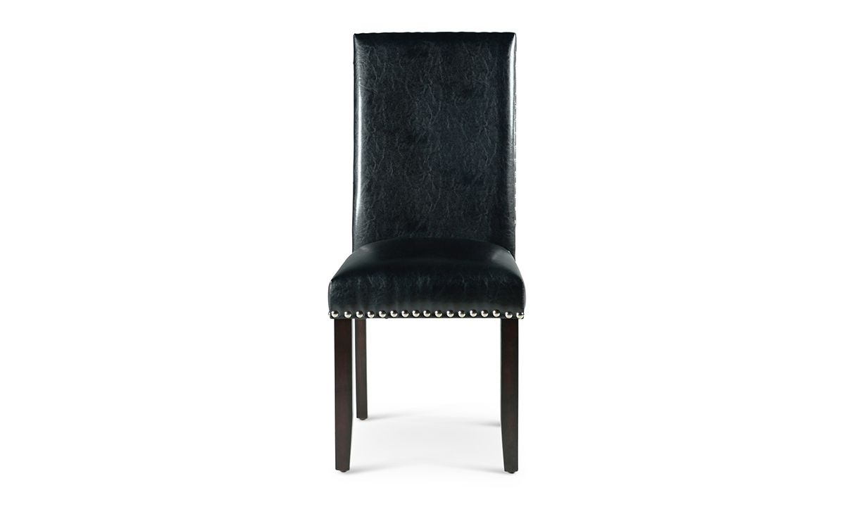 Whether you are adding to the Westby White Marble Dining Sets or supplementing an existing ensemble, the Westby Black Dining Parsons Chair delivers understated, sophisticated style to any setting. Crafted from hardwood solids and Birch veneers, the slender tapered legs of this 39-inch tall Parsons chair flaunt a rich, Ebony black wood finish. Black leather look-fabric upholstery, finished in eye-catching pewter nail head trim, adorns the seat and back of the streamlined silhouette to give the piece a luxe look and easy-clean surface that will keep its sharp looks for years to come.
