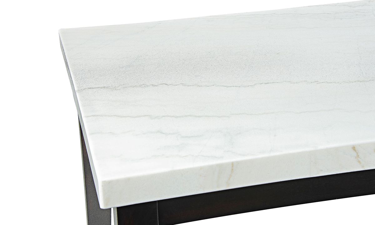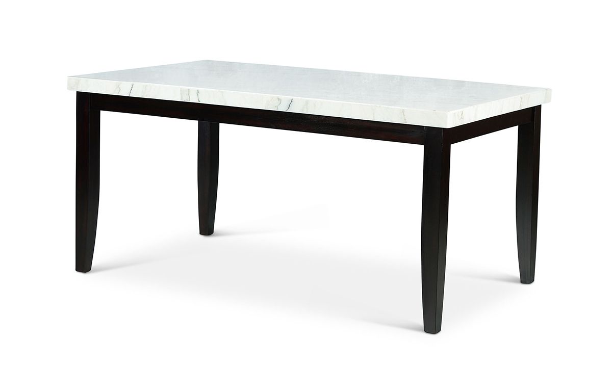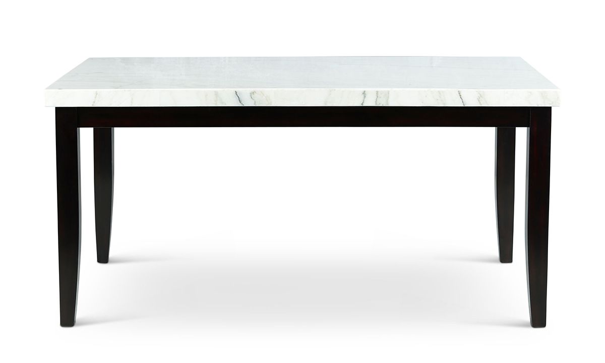 A fitting centerpiece for a kitchen, dining room or home office seeking understated, modern style, the Westby White Marble Dining Table is an essential addition to any contemporary decorative ensemble. Crafted from hardwood solids and Birch veneers with a chic, Ebony black wood finish, the 64-inch table features a minimalist profile distinguished by slender tapered legs. Black mineral graining in the luxe white marble tabletop creates a chic, organic contrast against the classic black and white color palette to give this piece a sophisticated versatility that will instantly elevate any living space.